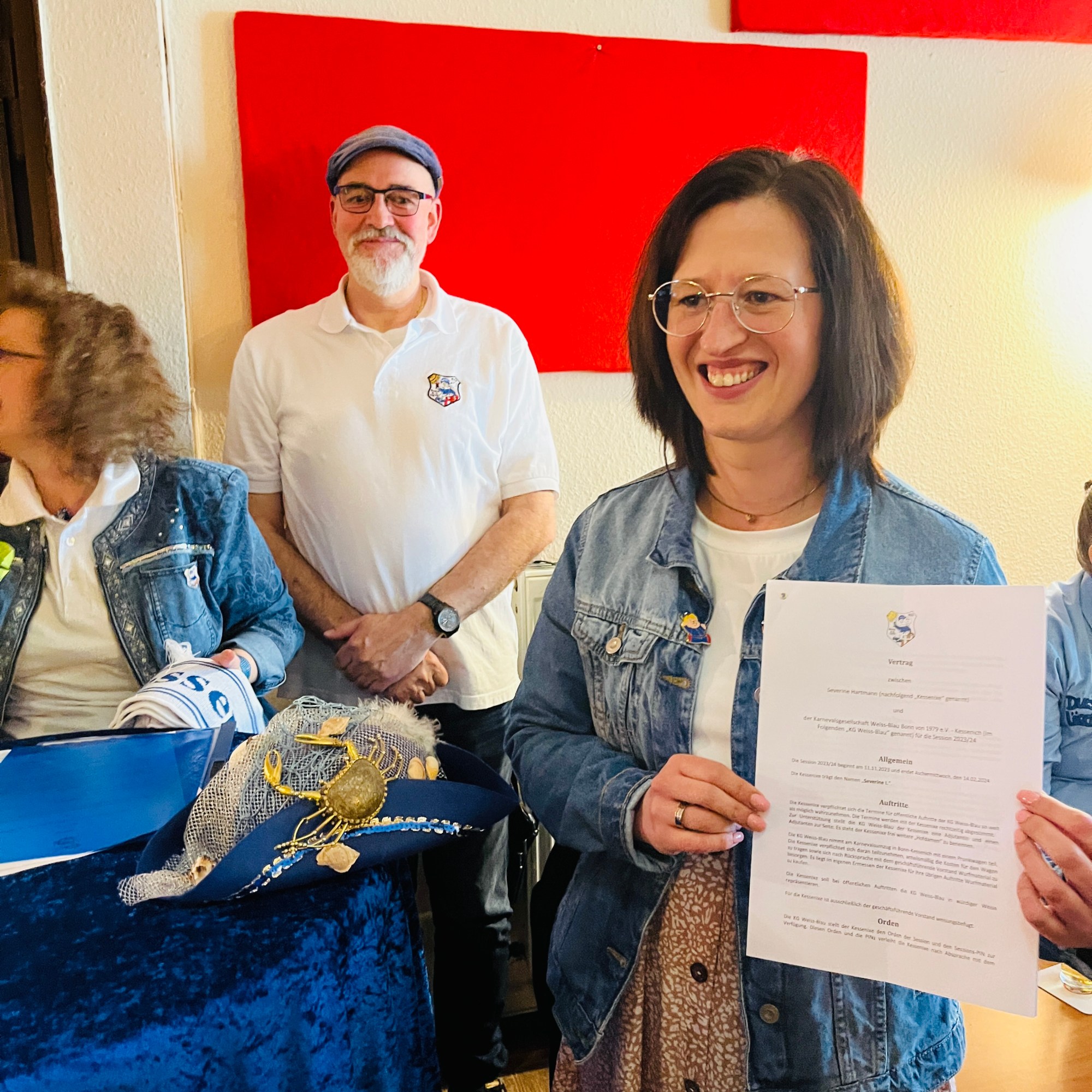 Den Wunsch, als Mädchen aus dem Osten einmal Tollität zu werden, hatte sie schon lange und ist bei uns nicht auf taube Ohren gestoßen – ihr Wunsch wurde erhört! Sie wird heute ihren Vertrag unterzeichnen und dann bis zur Proklamation als designierte Kessenixe Severine I. unseren Verein im närrischen Jubiläumsjahr 4 x 11 mit viel Freude und Spaß nach außen tragen und durch die närrischen Wellen führen.