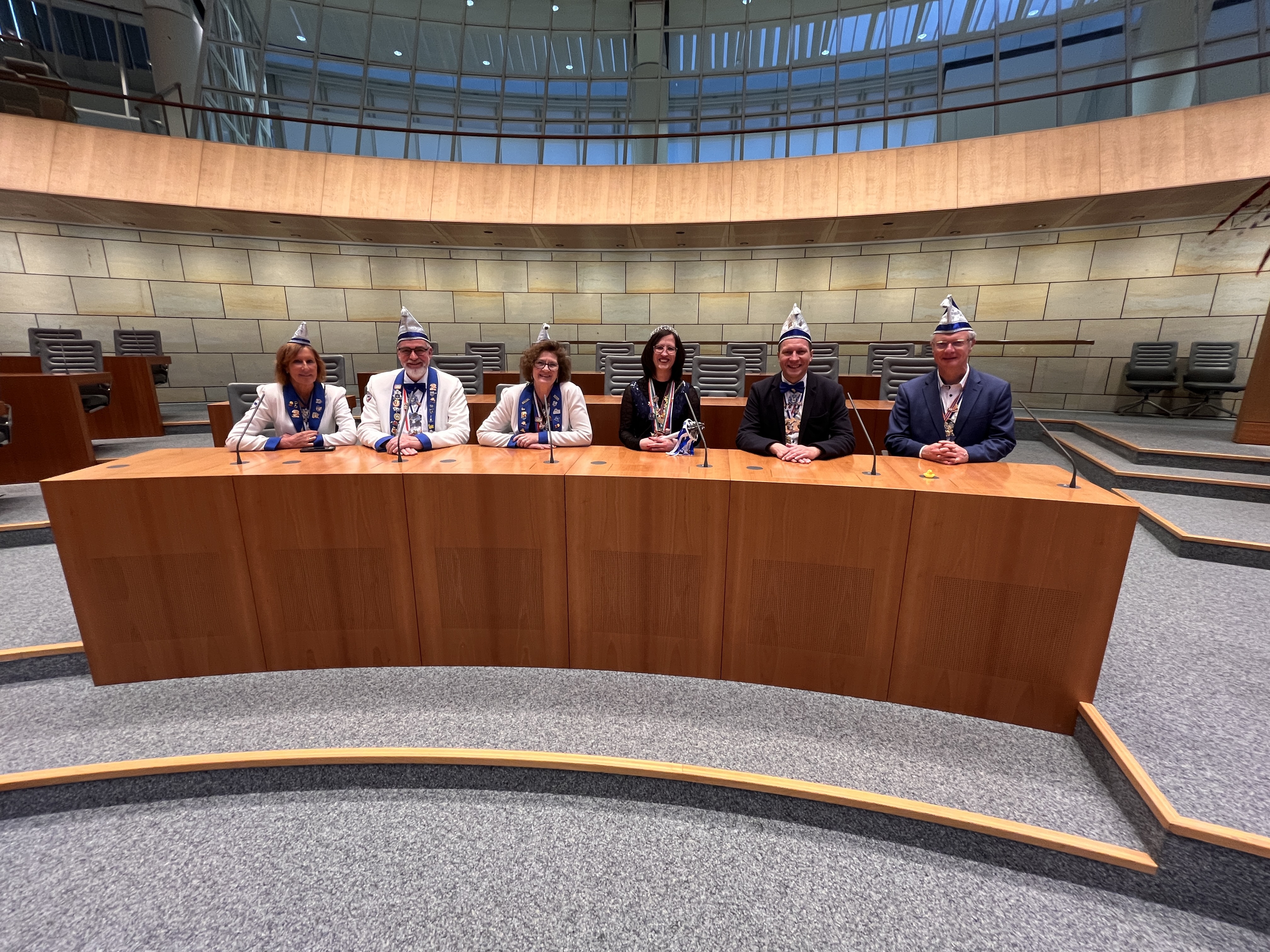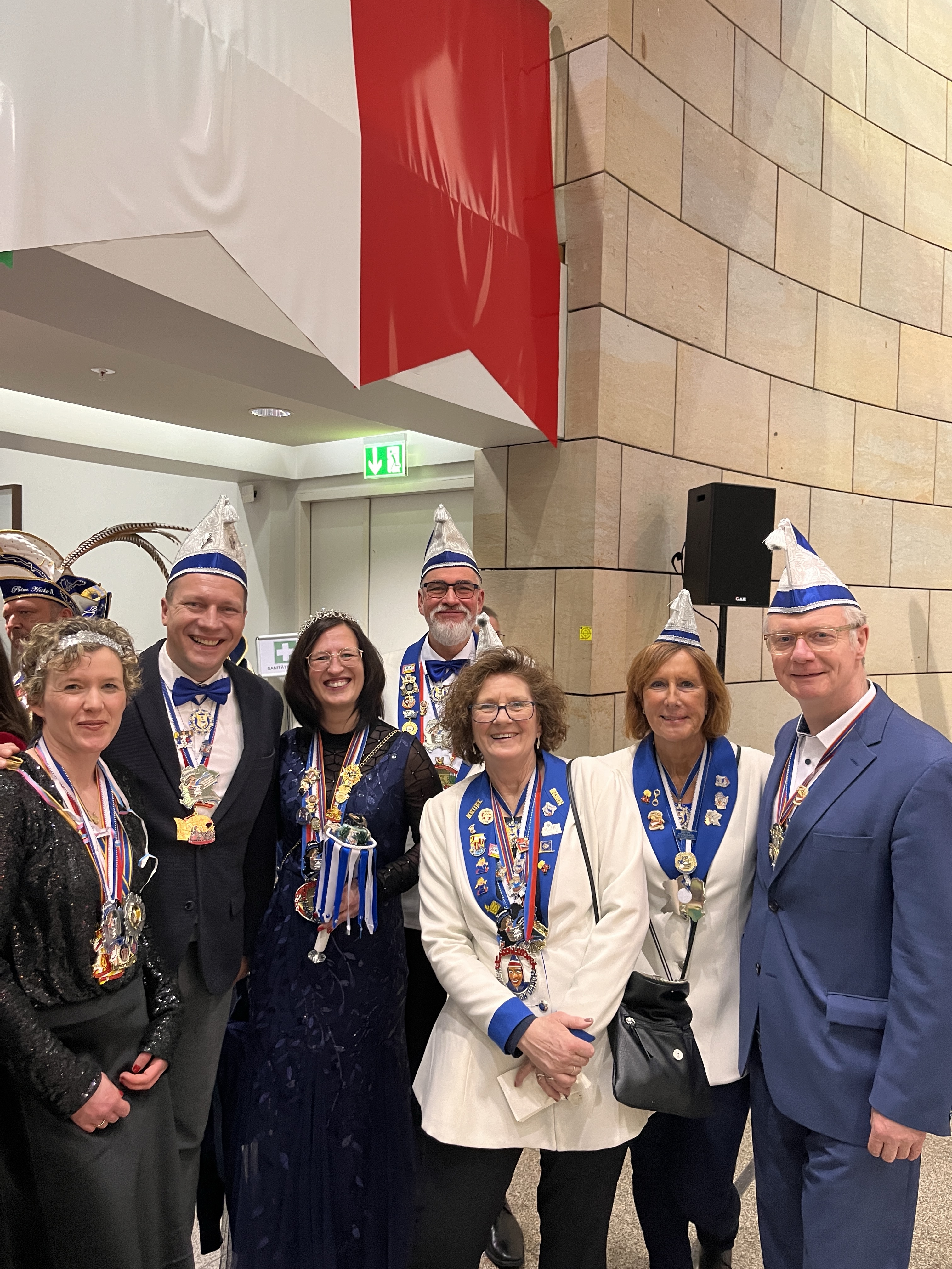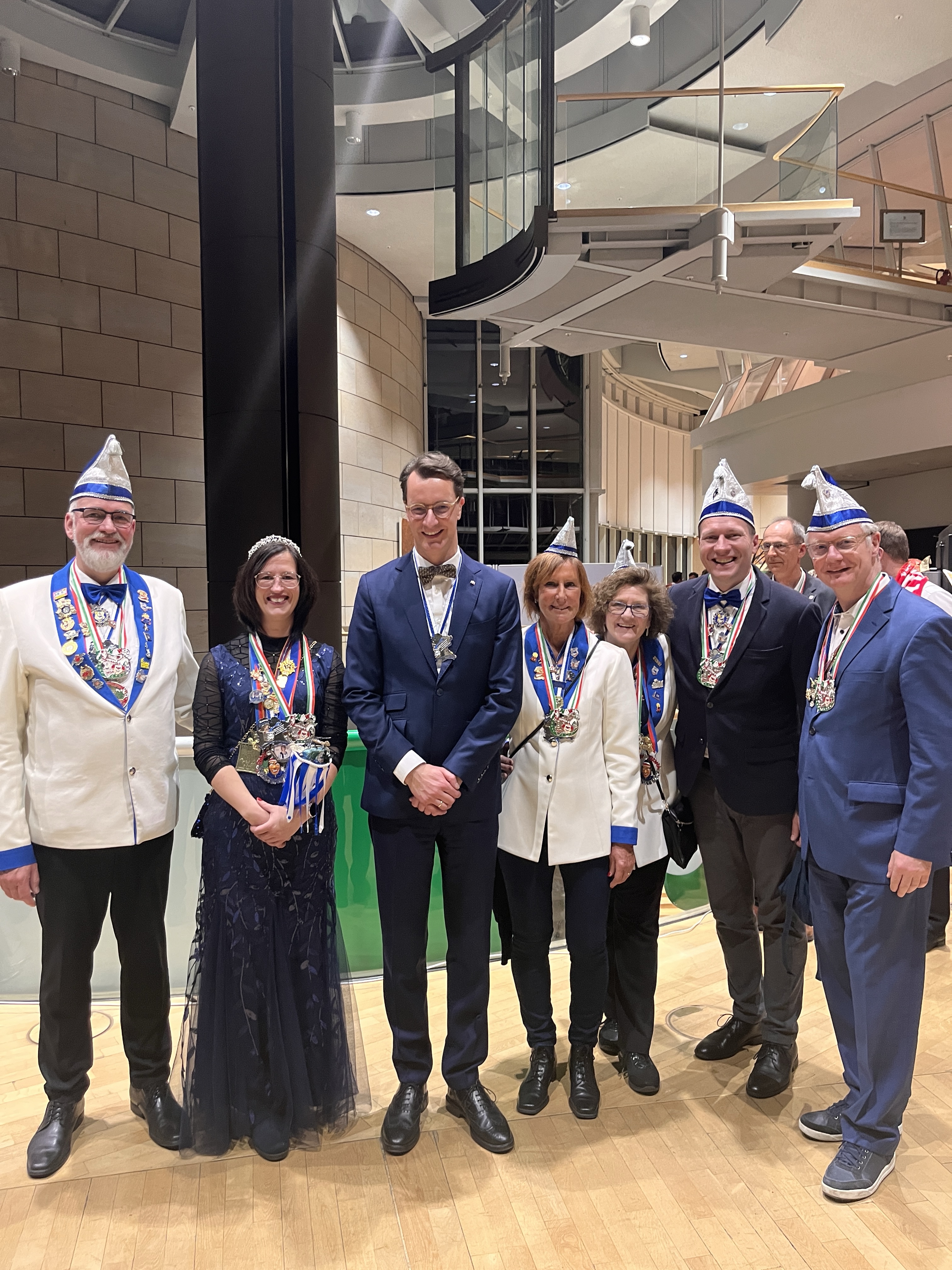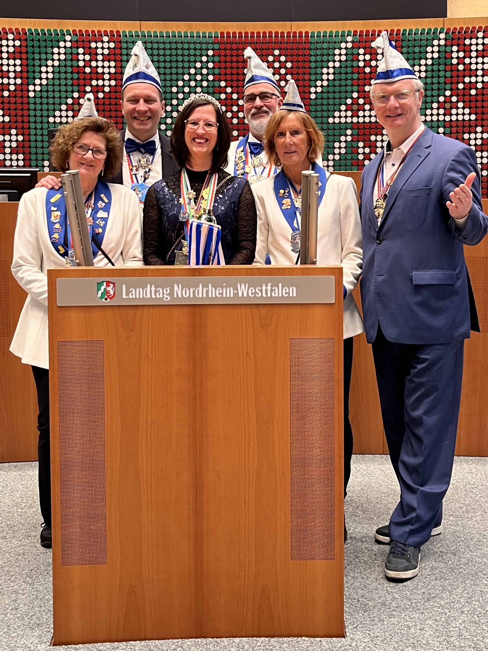 Beim Närrischen Landtag, dem größten Empfang des närrischen Brauchtums in Nordrhein-Westfalen, versammelten sich 11 mal 11 Prinzenpaare, Dreigestirne, Prinzessinnen und Prinzen aus allen Landesteilen im Parlamentsgebäude. Auf Einladung des Präsidenten des Landtags Nordrhein-Westfalen, André Kuper, fanden sich weit über 100 Tollitäten ein, darunter auch die KG Weiss-Blau aus Kessenich, um das närrische Treiben zu zelebrieren.