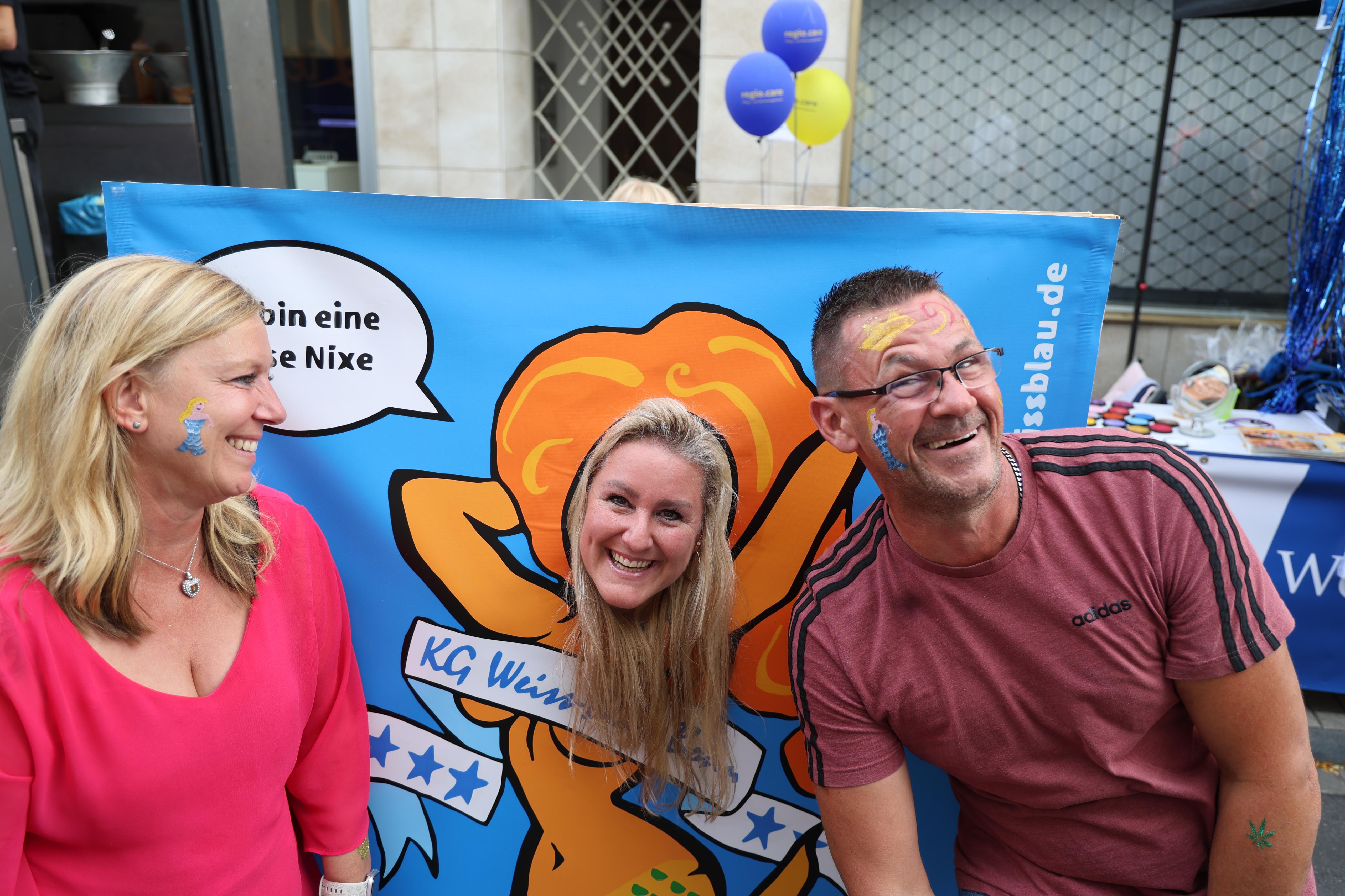 Um auf das Brauchtum im Vierdel aufmerksam zu machen, war die KG Weiss- Blau auch in diesem Jahr wieder mit dabei. Mit unserer Nixen-Fotowand konnte jeder, dem der Sinn danach stand, einmal in die Rolle der Nixe schlüpfen und dank unseres Ordensmeisters Peter Schiffer auch ein Sofortbild dieses Moments erhalten. Für das leibliche Wohl war in Form von frischen Waffeln und Kaffee gesorgt. Unsere ehemalige Kessenixe Ela I. unterstützte uns wie so oft beim Kinderschminken. Dank des schönen Wetters und der Unterstützung von einem engagierten Helferteam war auch der Herbstmarkt 2024 ein voller Erfolg.