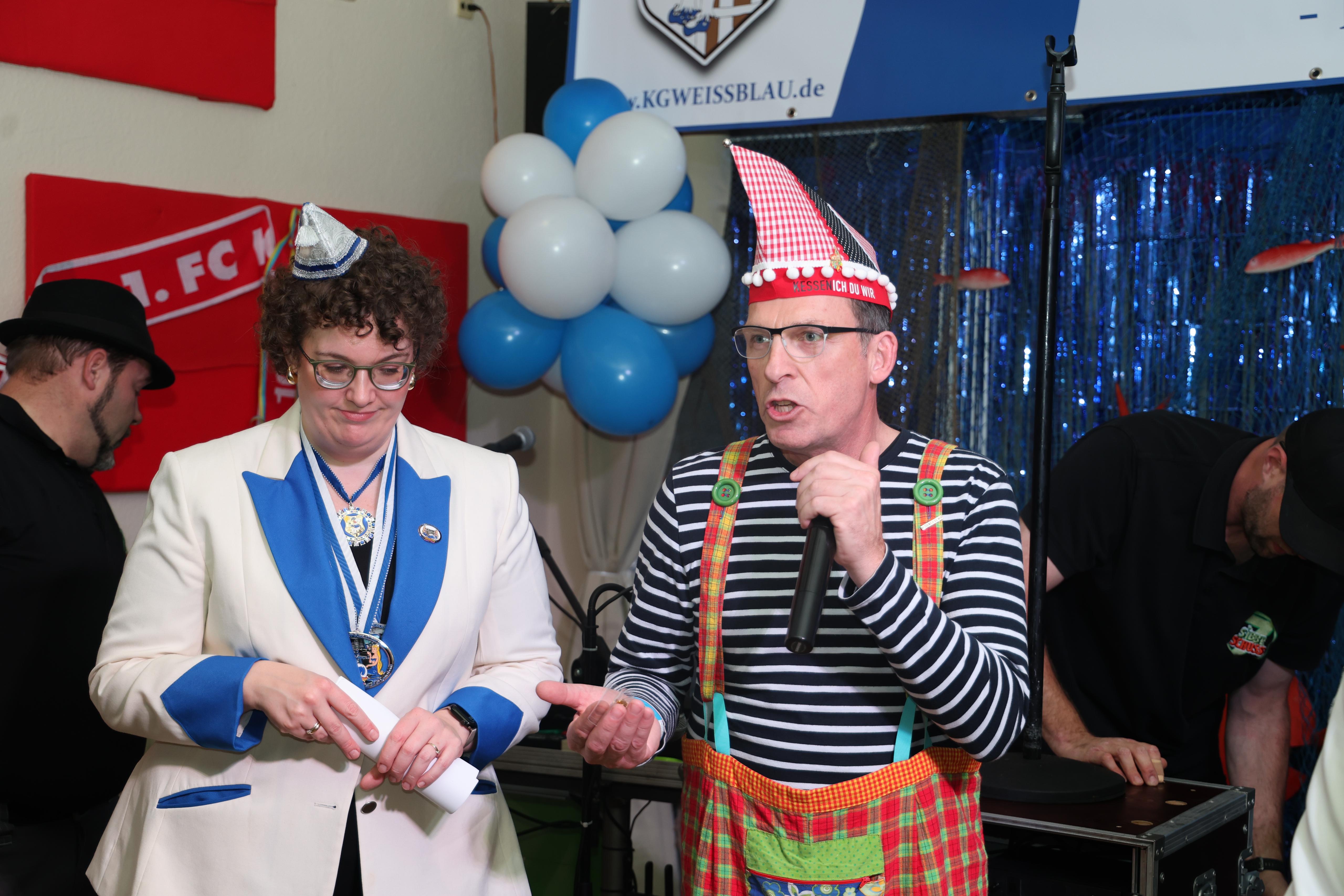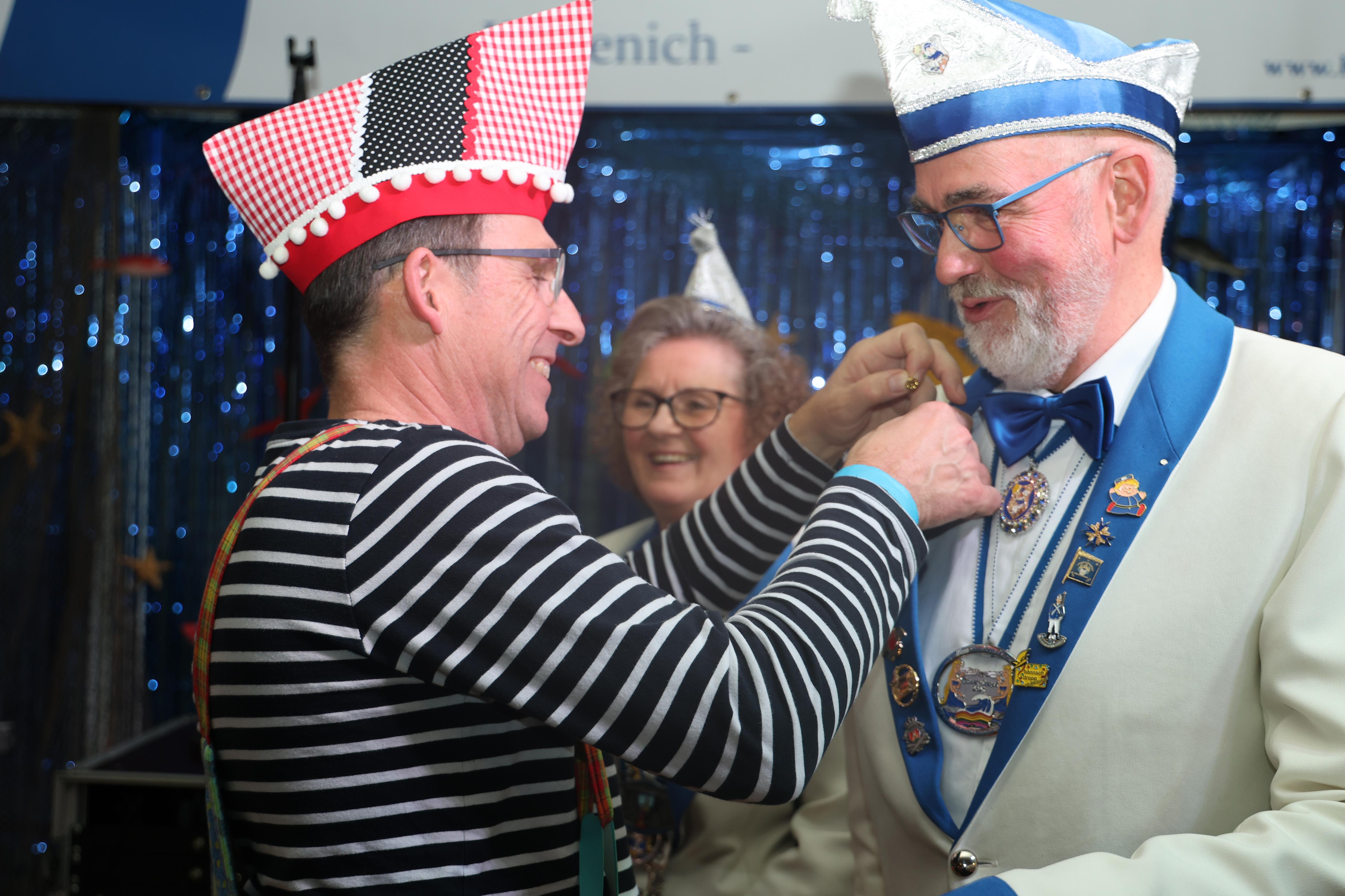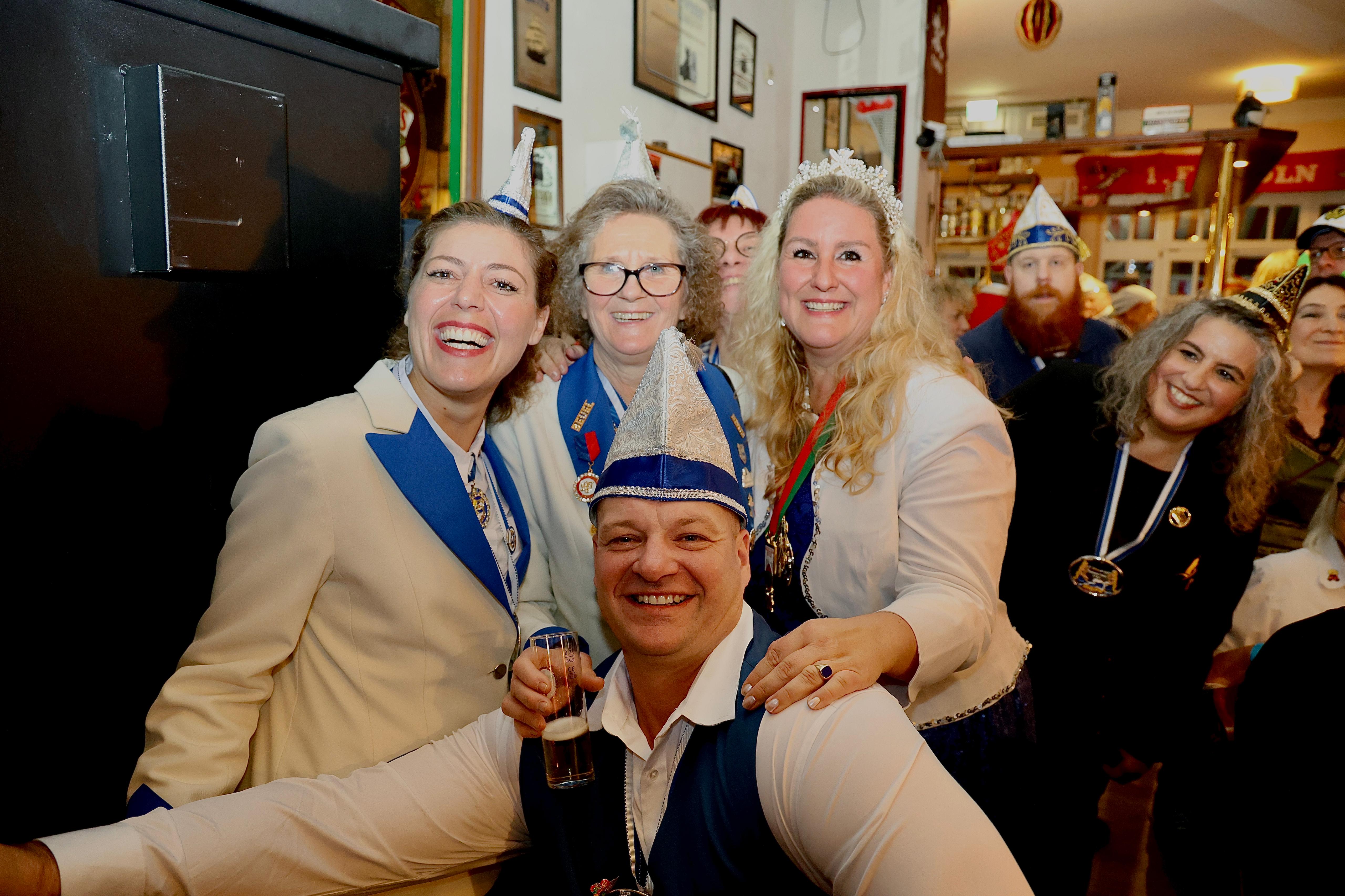 Besonders erfreulich war der Besuch des designierten Dreigestirns aus Buschdorf, das ebenfalls gratulierte und mit ihrer guten Laune die Atmosphäre bereicherte. Ein Abgeordneter des Bundes Deutscher Karneval war ebenfalls anwesend und ehrte die neue Nixe mit dem Regionalorden.