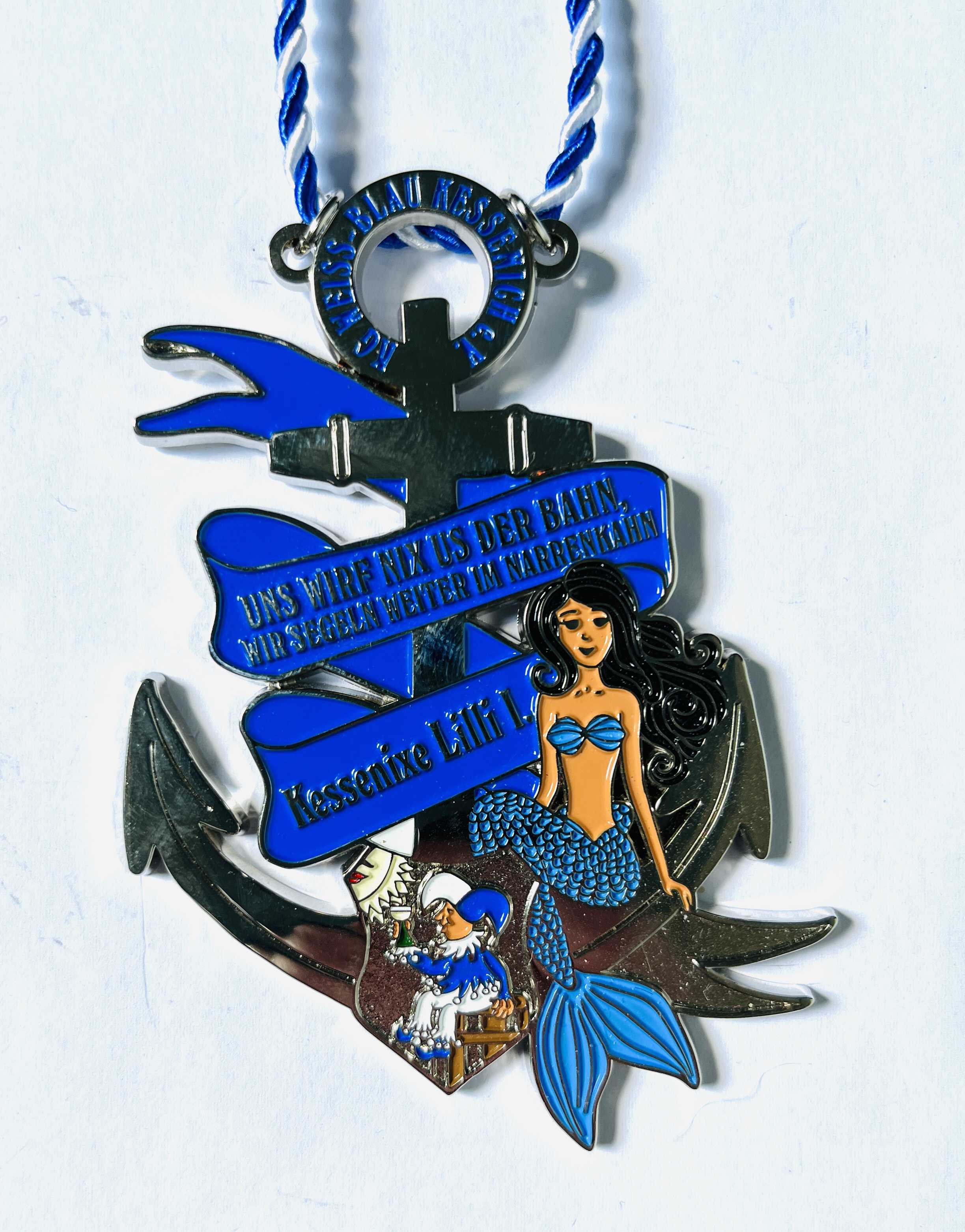 Die Legende besagt, dass eine zauberhafte Nixe im Rhein bei Bonn lebte. Sie hatte lange, funkelnde Haare und eine schimmernde Flosse, die im Sonnenlicht glitzerte. Jedes Jahr am 11.11. stieg sie aus dem Wasser und machte sich auf den Weg nach Kessenich, um den fröhlichen Karneval ins Dorf zu bringen. Die Nixe hatte ein Motto: „Hummer gegen Kummer“ und sie wollte, dass die Menschen in Kessenich ihre Sorgen und Probleme vergaßen und stattdessen zusammen feierten und lachten. Die Nixe regierte mit Weisheit und Güte, und sie hatte ihr Hauptquartier in der Markusschänke, wo sie ihre Gefolgschaft, die Karnevalsgesellschaft Weiss-Blau Bonn, versammelte. Die Menschen in Kessenich liebten es, die Nixe und ihre Freunde zu sehen, und sie begrüßten sie mit offenen Armen. Sie regierte das Dorf bis zum Aschermittwoch und verschwand dann wieder im Rhein. Die Menschen kehrten wieder in ihren Alltag zurück, aber die Erinnerung an ihren Besuch und die Freude, die sie gebracht hatte, blieb den Menschen von Kessenich das ganze Jahr über erhalten.